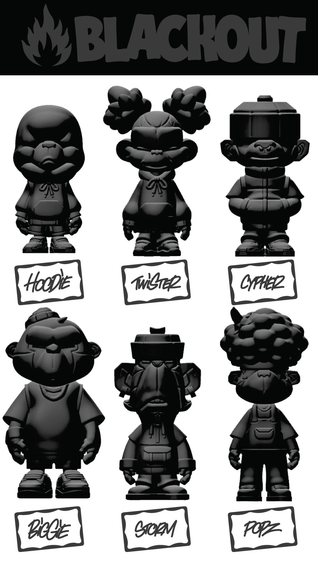 Stripped of color, unified in black not to hide who they are, but to reveal their purest form.